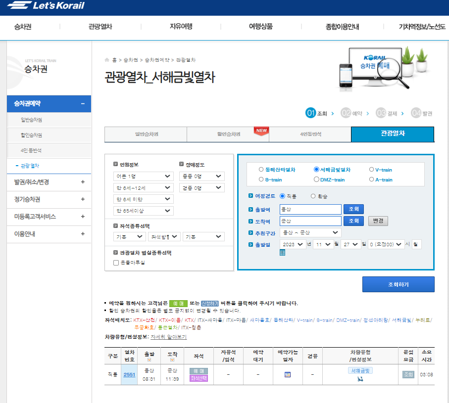 서해 금빛열차 일반 좌석 예매 방법 및 시간표