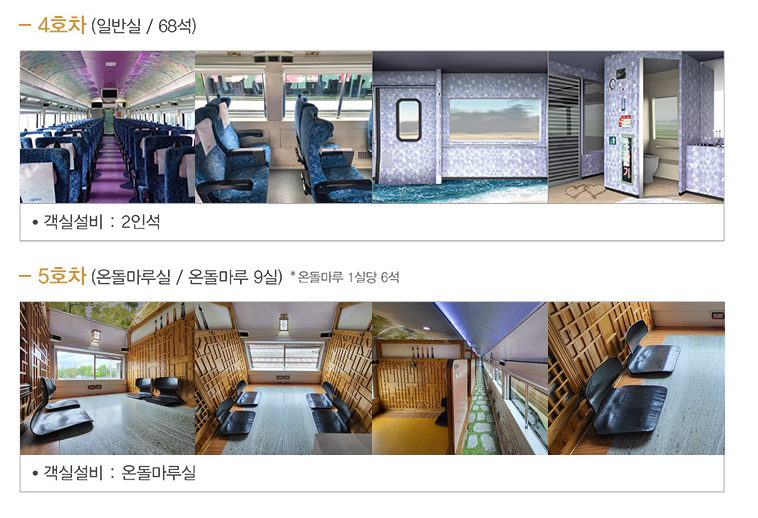 ⑤ 비용: 온돌마루 비용은 30,000원 추가가 되므로, 기차 표 값 + 30,000원이라고 보시면 됩니다.