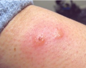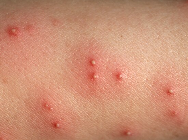 흔하게 볼 수 있는 모기에 물린 사진입니다. 독성이 빠지기 전에 빨갛게 살갗이 부풀어 오릅니다. 그리고 간지러움을 바로 수반합니다.