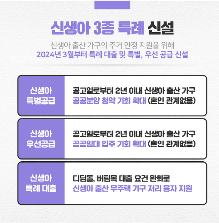신생아 특례 3종 신설 지원