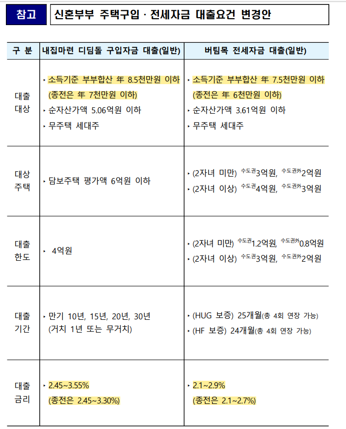 참고자료| 신혼부부 주택 구매, 전세 자금 대출 요건 변경 된 부분